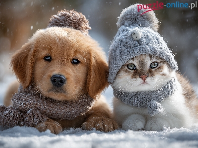 Czapka, Pies, Szczeniak, Kot, Grafika AI, Szaliki