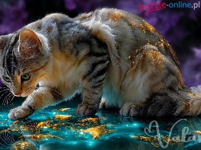 Puzzle Ryby, Kot, Woda, Grafika AI