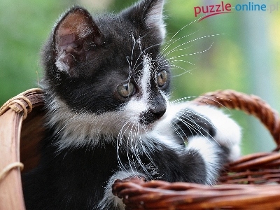 Kotek, Koszyk, Czarno, Biały, Wąsy