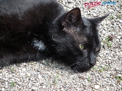 Puzzle Kotek, Leżący, Czarny, Kamyczki