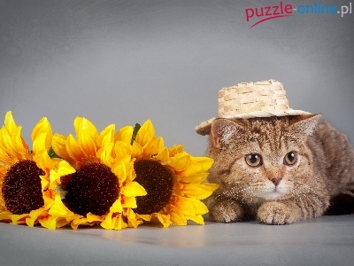 Puzzle Kapelusz, Kotek, Słoneczniki