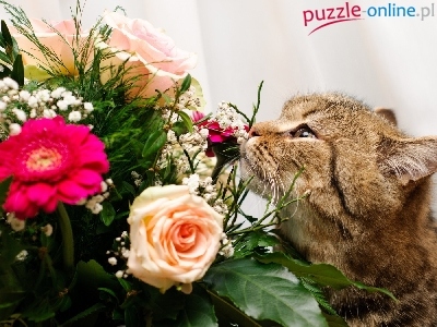 Puzzle Kwiaty, Kotek, Bukiet