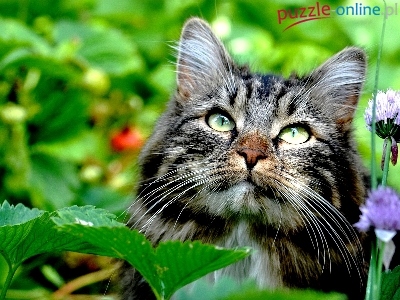 Puzzle Liście, Kotek, Kwiatki