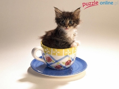 Puzzle Malowana, Kotek, Filiżanka