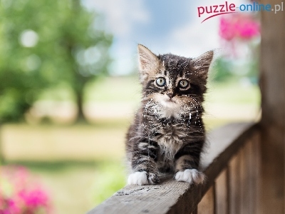 Puzzle Kotek, Słodki, Mały, Poręcz