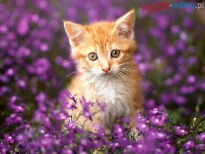 Puzzle Kotek, Mały, Rudy, Kwiatki