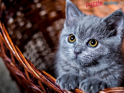Puzzle Kotek, Mały, Siwy, Koszyk
