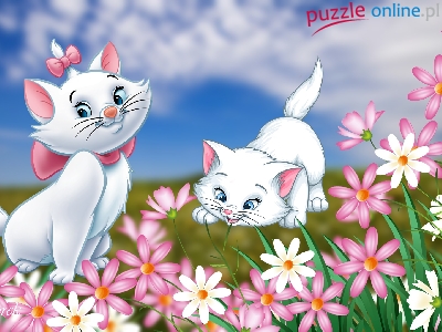 Puzzle Grafika, Kotki, Kwiaty, Dla dzieci