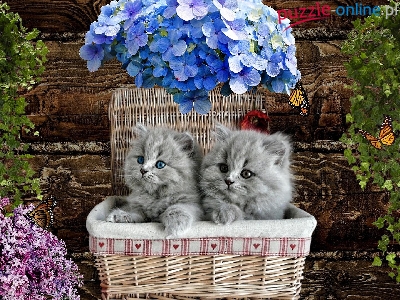 Słodkie, Kotki, Maleńkie, Kwiaty, Kosz