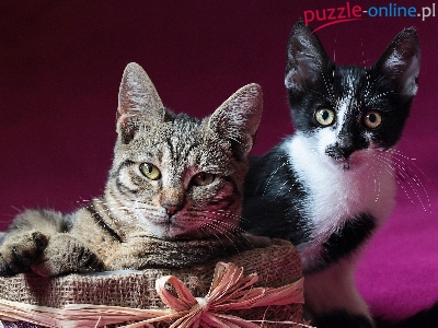 Kotki, Kokarda, Dwa, Słodkie, Siedzisko