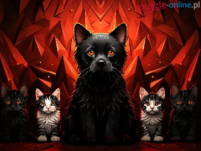 Grafika, Tło, Czerwone, Koty, Czarno-białe