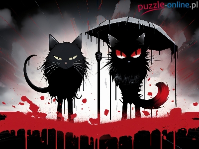 Rozlana, Farba, Dym, Dwa, Czarne, Parasolka, Grafika, Koty
