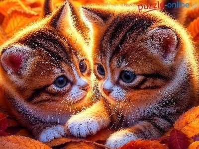 Liście, Młode, Dwa, Koty, Grafika, Żółte