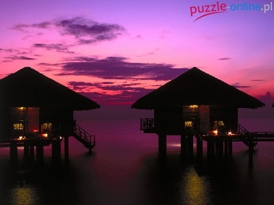 Puzzle Krajobraz, domki na wodzie