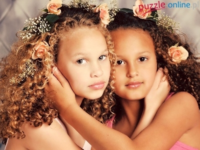Kręcone, Kwiaty, Dwie, Dziewczynki, Włosy