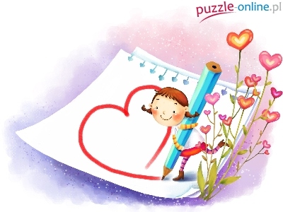 Puzzle Kredka, Rysunek, Serce, Kwiatki