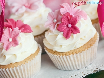 Krem, Kwiatuszki, Muffinki, Babeczki, Różowe