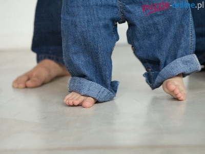 Puzzle Kroki, Tata, Dziecko, Dżinsy