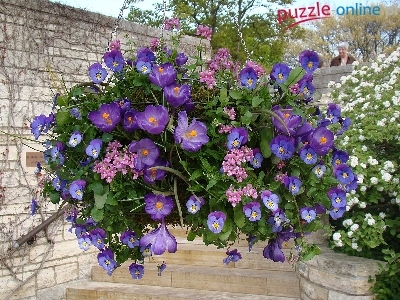 Puzzle Krokusy, Kwiaty, Bratki, Kompozycja