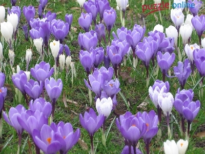 Puzzle Krokusy, Białe, Fioletowe, Wiosna