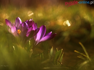 Puzzle Fioletowe, Krokusy, Kwiaty