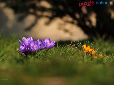 Puzzle Fioletowe, Krokusy, Kwiaty