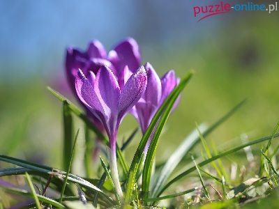 Rozmyte, Rozświetlone, Fioletowe, Krokusy, Tło, Kwiaty