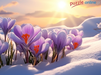 Puzzle Śnieg, Krokusy, Zima, Promienie słońca