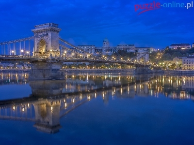 Most Łańcuchowy, Budapeszt, Rzeka Dunaj, Węgry, Noc, Zamek Królewski