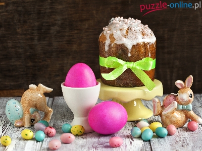 Wielkanoc, Króliczki, Jajeczka, Figurki, Kompozycja, Babka, Pisanki