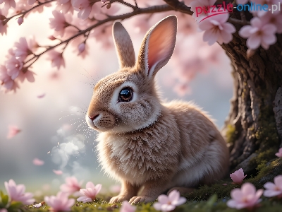 Puzzle Drzewo owocowe, Kwiaty, Królik