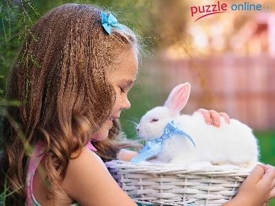 Puzzle Królik, Dziewczynka, Koszyk, Ogród
