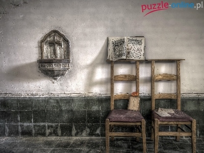 Kropielnica, Krzesła, Książki, Wnętrze, Aspersorium, Krzyż