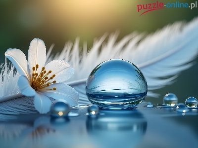 Puzzle Piórko, Kropla, Kwiat, Grafika AI