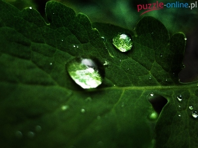 Puzzle Kropla, Zielony, Listek, Wody