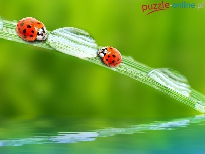 Krople, Tło, Dwie, Biedronki, Rozmyte