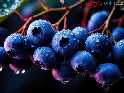 Borówki czarne, Łodygi, Krople, Tło, Ciemne