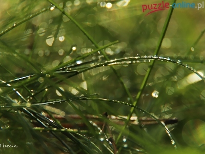 Puzzle Krople, Trawa, Źdźbła, Bokeh