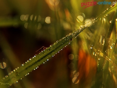 Krople, Makro, Trawa, Źdźbło, Rosy
