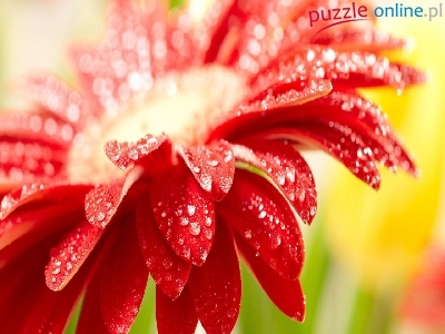 Puzzle Krople, Czerwony, Kwiat, Wody