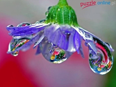 Puzzle Krople, Fioletowy, Kwiatek, Wody