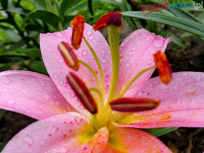 Puzzle Krople, Różowa, Lilia, Deszczu