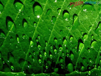 Puzzle Krople, Zielony, Liść, Wody