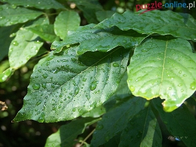 Puzzle Krople, Zielone, Liście, Deszczu