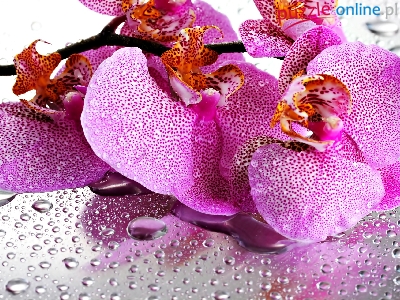 Krople, Różowa, Orchidea, Wody