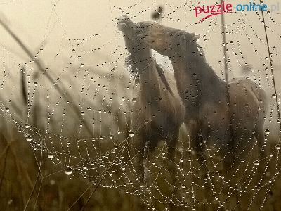 Puzzle Krople, Konie, Pajęczyna, Rosy