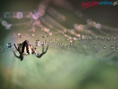 Puzzle Krople, Pająk, Pajęczyna, Bokeh