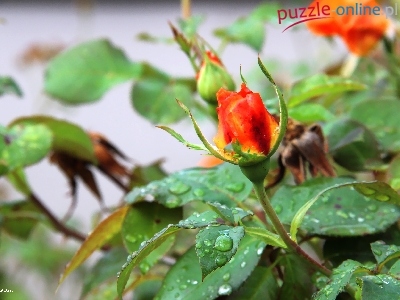 Puzzle Krople, Róża, Pąk, Deszczu