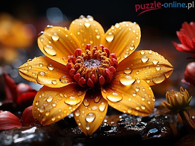 Puzzle Płatki, Żółty, Kwiat, Krople