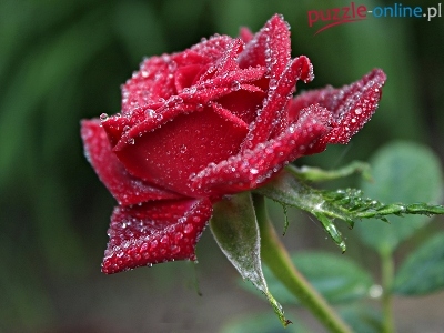 Puzzle Krople, Czerwona, Róża, Makro